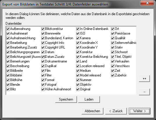 In der Liste Datenfelder das Kontrollkästchen der Datenfelder markieren, welche exportiert werden sollen.