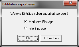 - Markierte Einträge markieren, wenn nur die Daten der in der Bildliste markierten Einträge exportiert werden sollen, sonst Alle Einträge markieren.