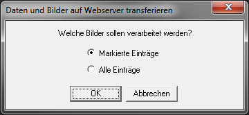 - Im Dialog Bilder und Daten zum Webserver übermitteln definieren, ob alle Bilder der Bildliste oder nur die markierten Bilder zum Webserver übertragen werden sollen.