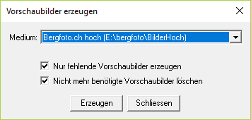 3) Die Erzeugung der Vorschaubilder erfolgt immer für alle Bilder eines Mediums. Wählen Sie das gewünschte Medium aus der Auswahlliste aus.