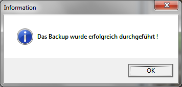 5. Wenn die Sicherungsdatei erfolgreich gespeichert werden konnte, wird folgendes Meldungsfenster angezeigt: